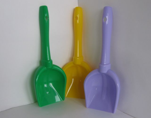 Совочек детский из высококачественного пластика: яркий (долго не тускнеет), крепкий, красивый внешне (с плавными обводами), функциональный (широкая выпуклая чашка скребка, которой удобно как копать (при входе в песок не гнется), так и переносить и накладывать песок (не вываливается и не просыпается). Длина - 22,5 см, ширина - 8 см, толщина ручки - 3 см.