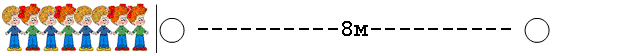 Сразу за линией старта лежит обруч (диам. 45 см) с двумя кубиками. Ребенок берет один кубик и переносит его во второй обруч, лежащий на расстоянии 8 м, кладет его и возвращается за вторым кубиком, берет его и переносит его тоже во второй обруч. Участник бежит обратно и передает эстафету по руке. Следующий ребенок переносит кубики по одному из второго обруча в первый и.т.д. Примечание: кубик, выкатившийся из обруча ребенок возвращает самостоятельно.