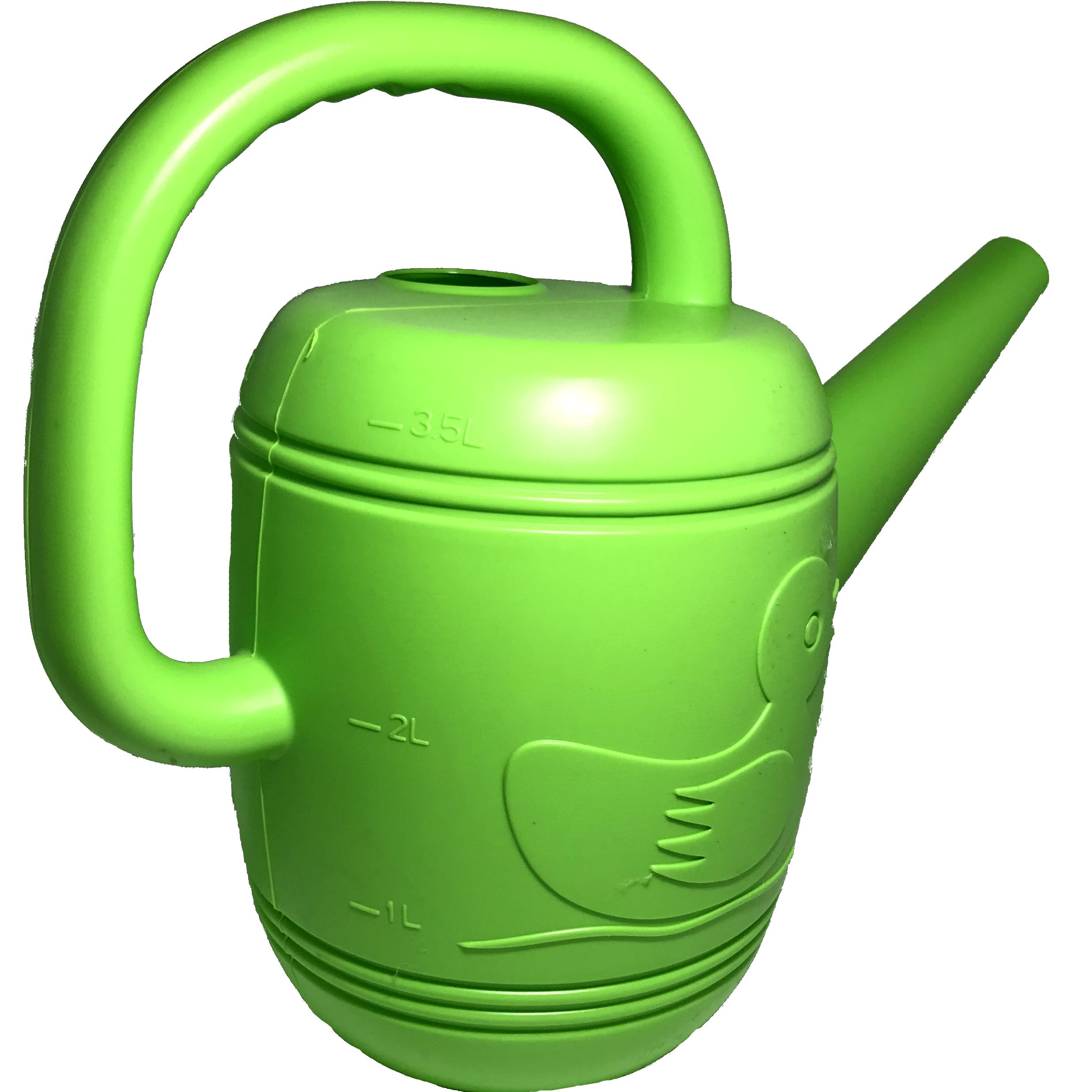 Детская лейка сделана из пластмассы. Длина лейки - 34,5 см. Лейка вмещает 1,5 л (воды). Детская лейка овальная с дугообразной большой удобной ручкой и широким мощным носиком для интенсивного полива.