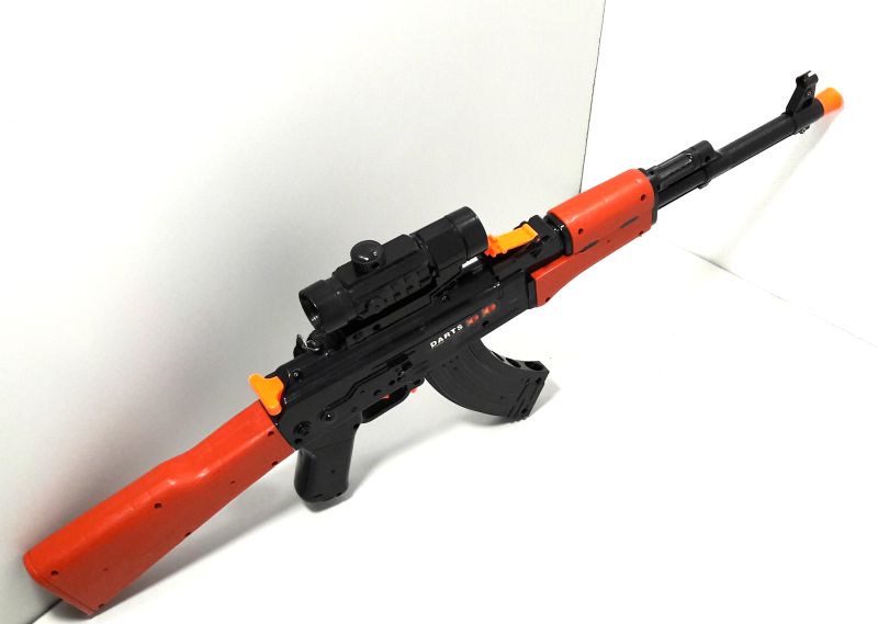 Игрушка имеет вид автомата. Для выстрела нужно взвести пружину, потянув взвод сзади (смотрите в ролике во вкладке ВИДЕО), и вставить мягкий патрон в дуло. В комплект входит 5 патронов, которые можно вставить в отверстия в рожке. В целом оружие безопасно, так как пулька летит не сильно и имеет мягкий и широкий конец. С другой стороны, автомат с присосками придает игре большую реалистичность, а ребенок получает удовольствие от результатов стрельбы. В прицел можно засыпать гидрогелевые шарики орбизы и при взводе пружины они будут вылетать из дула.