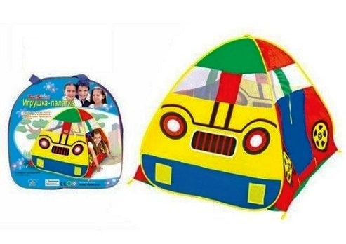 Палатка игровая Машина изготовлена в виде машинки с нарисованными колесами, фарами и капотом. С двух сторон палатки есть дверцы-шторки, застегиваемые на липучки и завязки. Дно палатки квадратной формы. У нее два входа по бокам в виде дверей машины прямоугольной формы с застежками-липучками и завязками. С каждой стороны палатки есть окна с сетчатыми вставками, защищающие от насекомых. Сетка позволяет хорошо просматривать палатку внутри и способствует ее вентиляции.