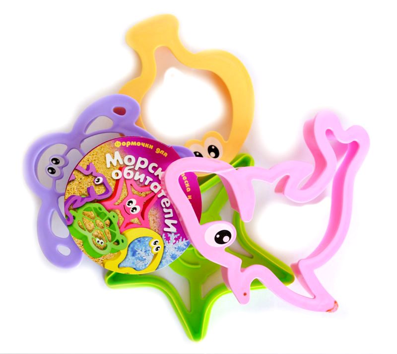 Эти детские формы познакомят Вашего ребенка с обитателями морского дна и коралловых рифов. Из формочек можно не только вылеплять морских обитателей, но и поиграть с ребенком в игру, произнося название каждого и рассказывая, где он обитает, что ест, что делает. Можно так же вспомнить, в каких мультфильмах ребенок видел подобных морских обитателей. Такие игры-занятия не только помогут провести время, но и благотворно повлияют на развитие ребенка. Формочки для песка с морскими обитателями обязательно стоит взять с собой, если планируется поездка на море!
