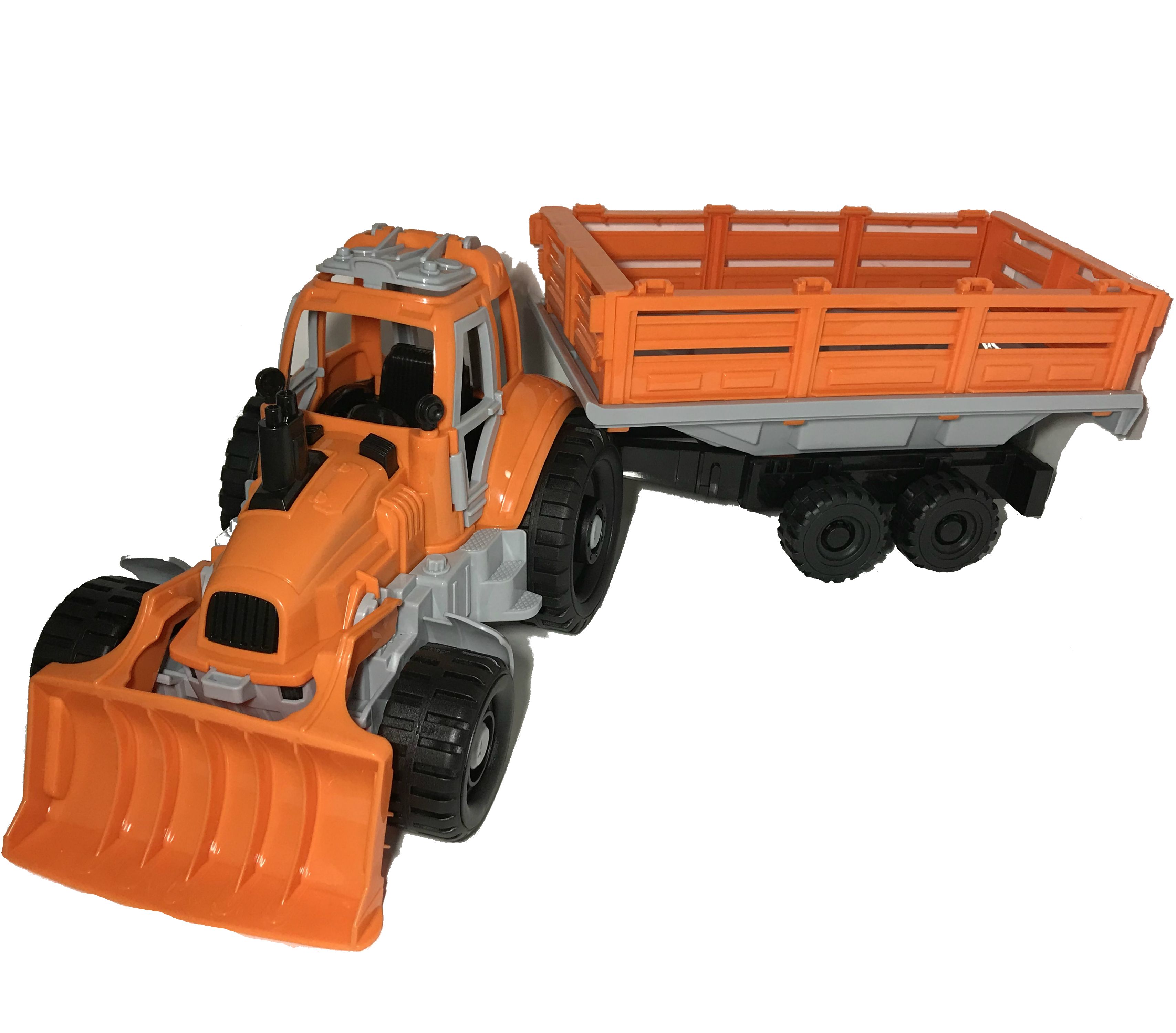 Игрушечный трактор сертифицирован для продажи не только в России, но и в Европе. Трактор можно использоваться как в уличных, так и в домашних играх. Он может перевозить разные грузы или животных в прицепе, а может перевозить песок в песочнице или снег зимой. А своим грейдером он может счищать снег и прокладывать дороги в заснеженных сугробах. Вы можете купить игрушечный трактор с прицепом в интернет-магазине "Родные игрушки". | Артикул | Н-397 |