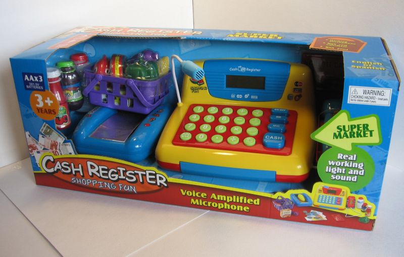 С помощью этой кассы Ваш ребенок сможет организовать настоящий супермаркет. В наборе есть: корзинка с продуктами и дополнительно 3 бутылочки (кетчуп, молоко, вода), отдельный транспортер с лентой, пластиковые монеты и бумажные деньги, пластиковая кредитная карточка.