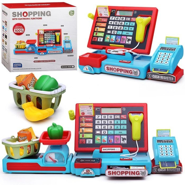 Что бы ребенку было интересно играть с кассой и он мог сразу организовать процесс работы магазина Вы можете дополнить покупку наборами овощей, фруктов, продуктов, хлеба, а так же весами - ребенок будет с удовольствием взвешивать овощи, фрукты и продукты перед продажей и пробитием на кассе.