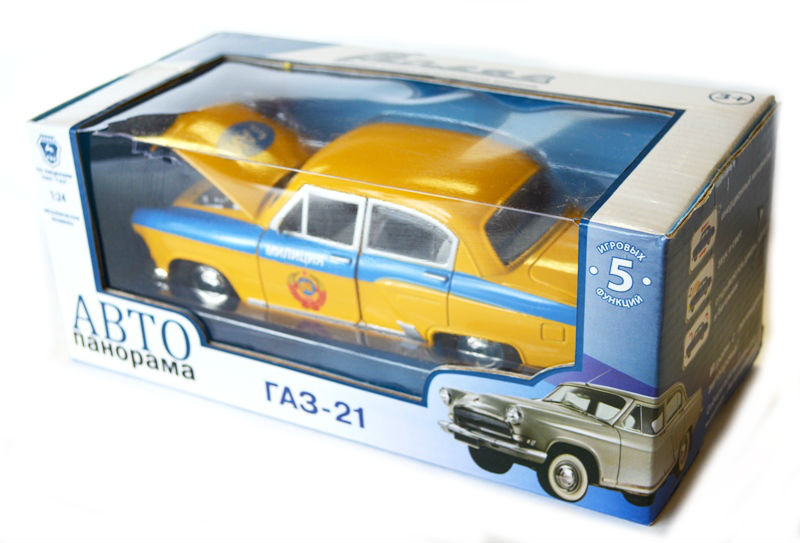 Волга упакована в цветную коробку, (ДxВxШ): 24x10x12 см.