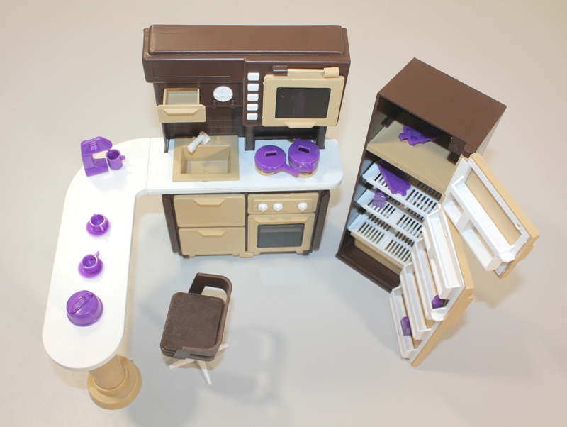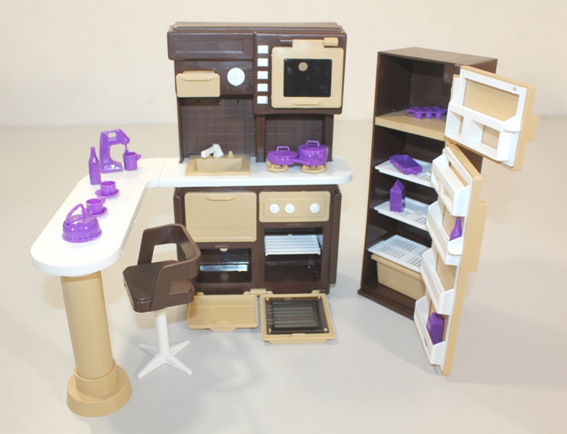 Любой ребенок обрадуется миниатюрным сковородкам, чашечкам, пачкам с молоком и многому другому! Кухня подходит для кукольного домика коттедж Коллекция.