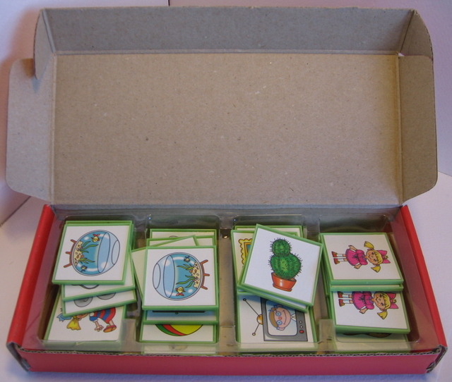 Карточки сделаны из пластмассы с цветной наклейкой. Тематика: "Мой дом". Размер одной карточки - 4 см.