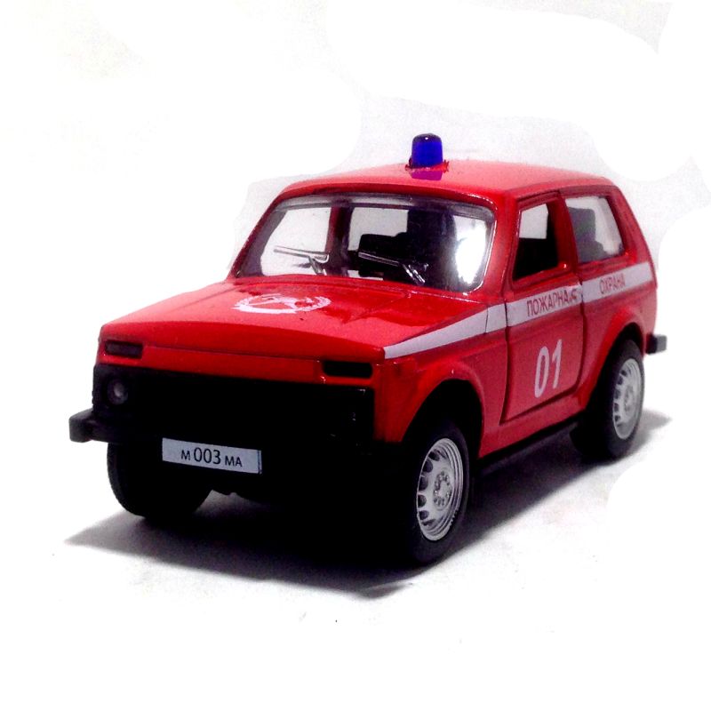 Игрушечная машинка нива пожарная служба - сделана из металла, машинка в масштабе 1:50. Размер машинки в Длину - 8,9 см, В Ширину - 3,7 см, В Высоту - 4,6 см. Машинка имеет красную окраску пожарной службы с белыми полосами на обоих сторонах машины, и цифры "01" на дверях. У машинки открываются две передние двери.
