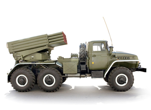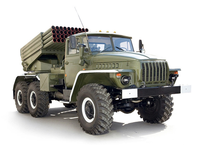 Увесистая, большая, высокая машина! Реактивная система залпового огня БМ-21 Град на базе Урал 4320 находится на службе у советской/российской армии с 1963 года. Система, представляющая собой эволюцию знаменитой БМ-13 «Катюша», создана для вооружения дивизионной артиллерии в ГНПП «Сплав» под руководством главного конструктора А. И. Ганичева. Дальность поражения цели до 30 км, калибр - 122 мм. "Град" предназначается для уничтожения и подавления живой силы и боевой техники противника в районах сосредоточения; для уничтожения и подавления артиллерийских и миномётных батарей; для разрушения укреплений, опорных пунктов и узлов сопротивления противника. Активно использовались в Афганской войне (1979—1989), Карабахском конфликте, Чеченской войне и в боевых действиях в Южной Осетии.