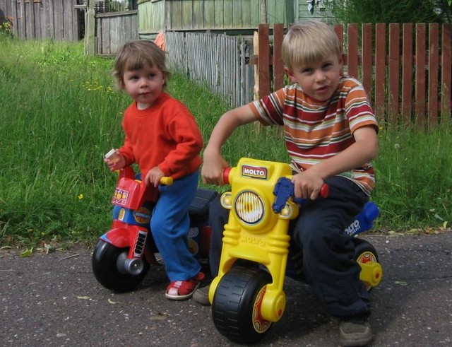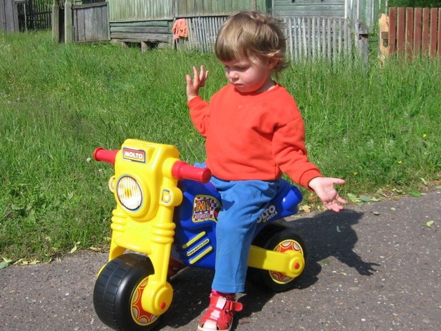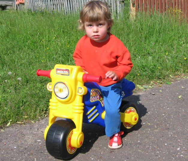 (На фото на мотоцикле катается и девочка 2-х лет и мальчик 5,5 лет).