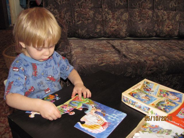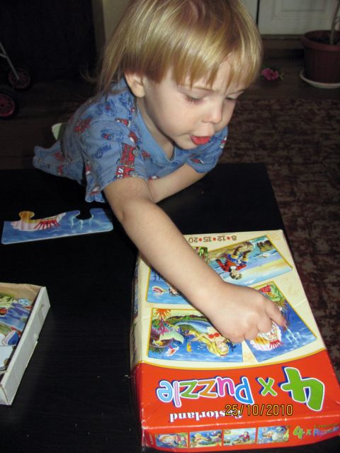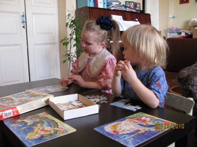 Количество составных частей (пазлов) в каждой картинке разное: 8, 12, 15 и 20 элементов. Таким образом задание усложняется!