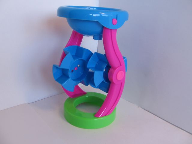 Песочная мельница, входящая в набор, увлечёт Вашего малыша, в неё можно насыпать песок или наливать воду. Ребенок сможет познать, что сухой песок сыпется и вращает лопасти мельницы. Кстати, мельницу можно использовать и для игры в ванной: здесь вместо песка вращать лопасти будет вода.