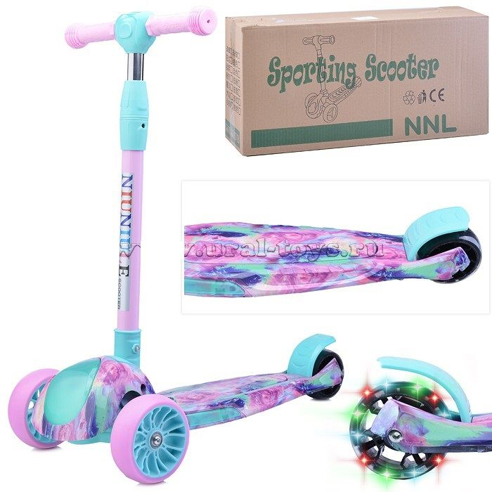 - Управление самокатом осуществляется наклоном рулевой стойки.