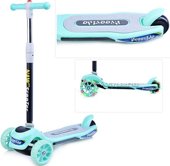 - Управление самокатом осуществляется наклоном рулевой стойки.