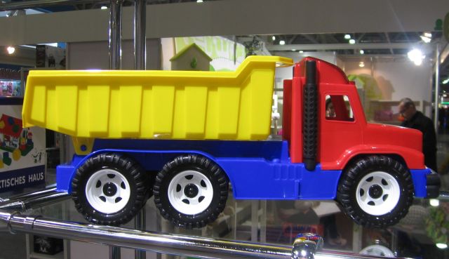Внимание: ранее грузовик-самосвал выпускался ООО "Полесье" по лицензии итальянской компании Cavalino под именем "Магнум". Данные фотосоответствуют этому периоду выпуска игрушки. Сейчас выпуск машинки перенесен в Россию (под именем самосвал Профи) на фабрику "Каролина" (г. Ростов-на-Дону) - см. фото игрушки самосвала слева в галерее. внешне видны незначительные отличия в форме колес.