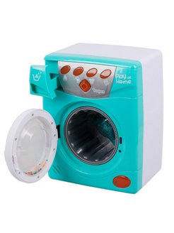 Размер: 18.5 х 13.5 х 24 см. Рботает от 3-х ратареек "АА" (в комплекте). Подсветка кнопок красным, барабана синим. Звуки набора воды, сигналы об окончании стирки. Четыре стадии стирки, которые можно включать отдельно или запустить весь цикл стирки сразу. Барабан вращается в обе стороны с разной скоростью. Вынимающийся отсек для порошка.