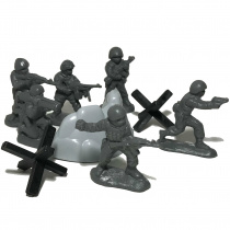 Солдатики спецназ - это набор из 6-ти фигурок и 3-х сюжетных предметов. Фигурки солдатиков выполнены из мягкого полиэтилена. Высота фигурок (стоя) - 4,5 см. В наборе: чётыре автоматчика, гранатомётчик (сидя) и патрульный с пистолетом (стоя). С помощью набора Ваш ребенок сможет создать различные сюжеты про задержания нарушителей или штурм зданий, например, по мотивам известных и любимых советских фильмов: "Государственная граница. Фильм № 6 «За порогом победы» и Фильм № 8 «На дальнем пограничье»", "Пограничный пес Алый", "Перехват", "Приказано взять живым", "Тревога".