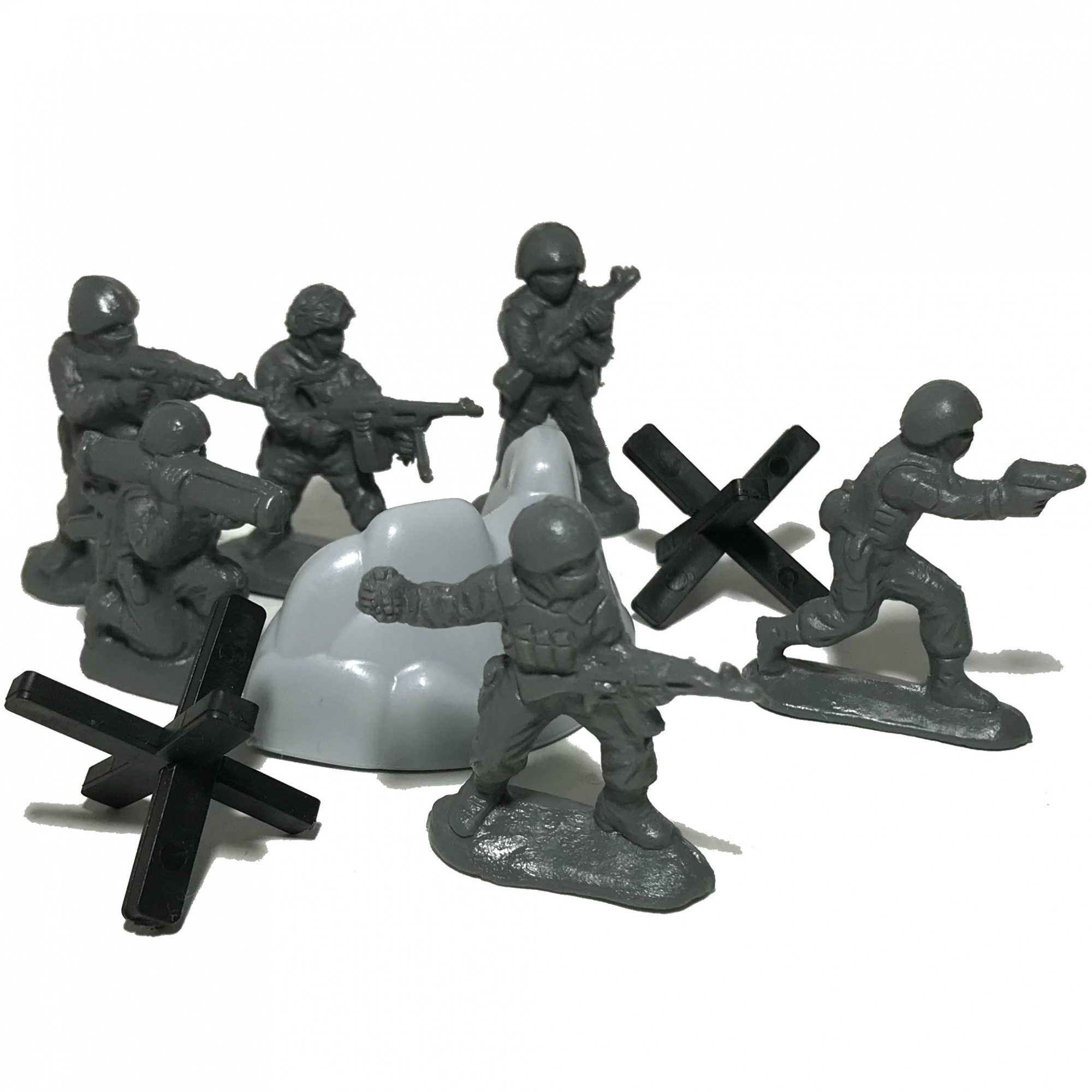 Солдатики спецназ - это набор из 6-ти фигурок и 3-х сюжетных предметов. Фигурки солдатиков выполнены из мягкого полиэтилена. Высота фигурок (стоя) - 4,5 см. В наборе: чётыре автоматчика, гранатомётчик (сидя) и патрульный с пистолетом (стоя). С помощью набора Ваш ребенок сможет создать различные сюжеты про задержания нарушителей или штурм зданий, например, по мотивам известных и любимых советских фильмов: "Государственная граница. Фильм № 6 «За порогом победы» и Фильм № 8 «На дальнем пограничье»", "Пограничный пес Алый", "Перехват", "Приказано взять живым", "Тревога". Внимание: фигурки выпускаются в семи цветах: серебро, шоколад, пепельно-чёрный, топлёное молоко, красный, синий, зелёный. Если Вам важен цвет - указывайте в примечании к заказу!
